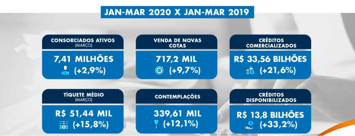 Crescimento Segmento de Consórcios - janeiro a março 2020